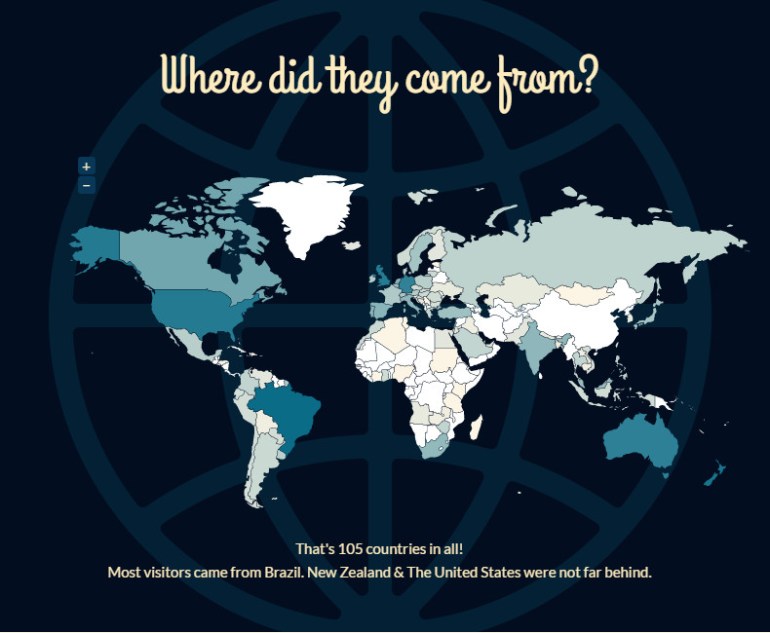Wow… ONE.HUNDRED.AND.FIVE countries! Another great surprise was to see that the largest number of visits came from my home country, Brazil. This is a surprise first because the texts are in English instead of Portuguese, and second because the platforms where I tend to share this content are largely dominated by English speaking users. I do share content on Facebook as well, where I connect to my Brazilian crowd more easily, but there the audience is constituted more of friends than of professional peers. Great surprise to start the blogging year.