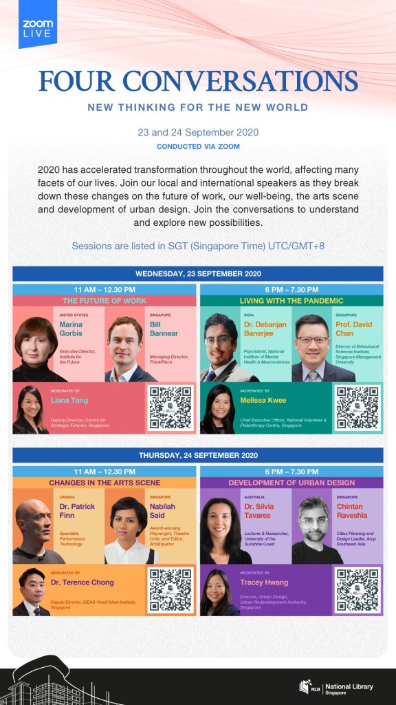 I am very honoured to join the National Library Singapore as part of the panel that will discuss ‘How can urban design for public spaces be reinvented against the backdrop of a pandemic and how will it affect the community?’