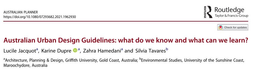 I have recently co-authored an article focused on existing Urban Design Guidelines in Australia. The article has been recently published in the Australian Planner.